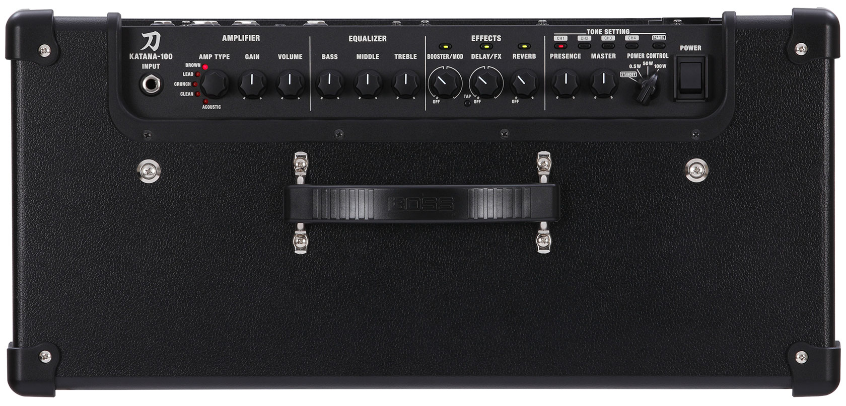 - AMP TYPE knob (ACOUSTIC, CLEAN, CRUNCH, LEAD, BROWN)
