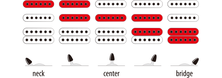 Pickups: PSNDS single coils na posição de pescoço e meio assim como PSND2 humbucker na posição da ponte