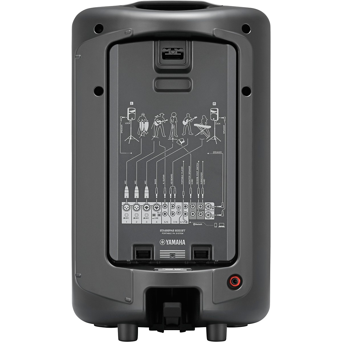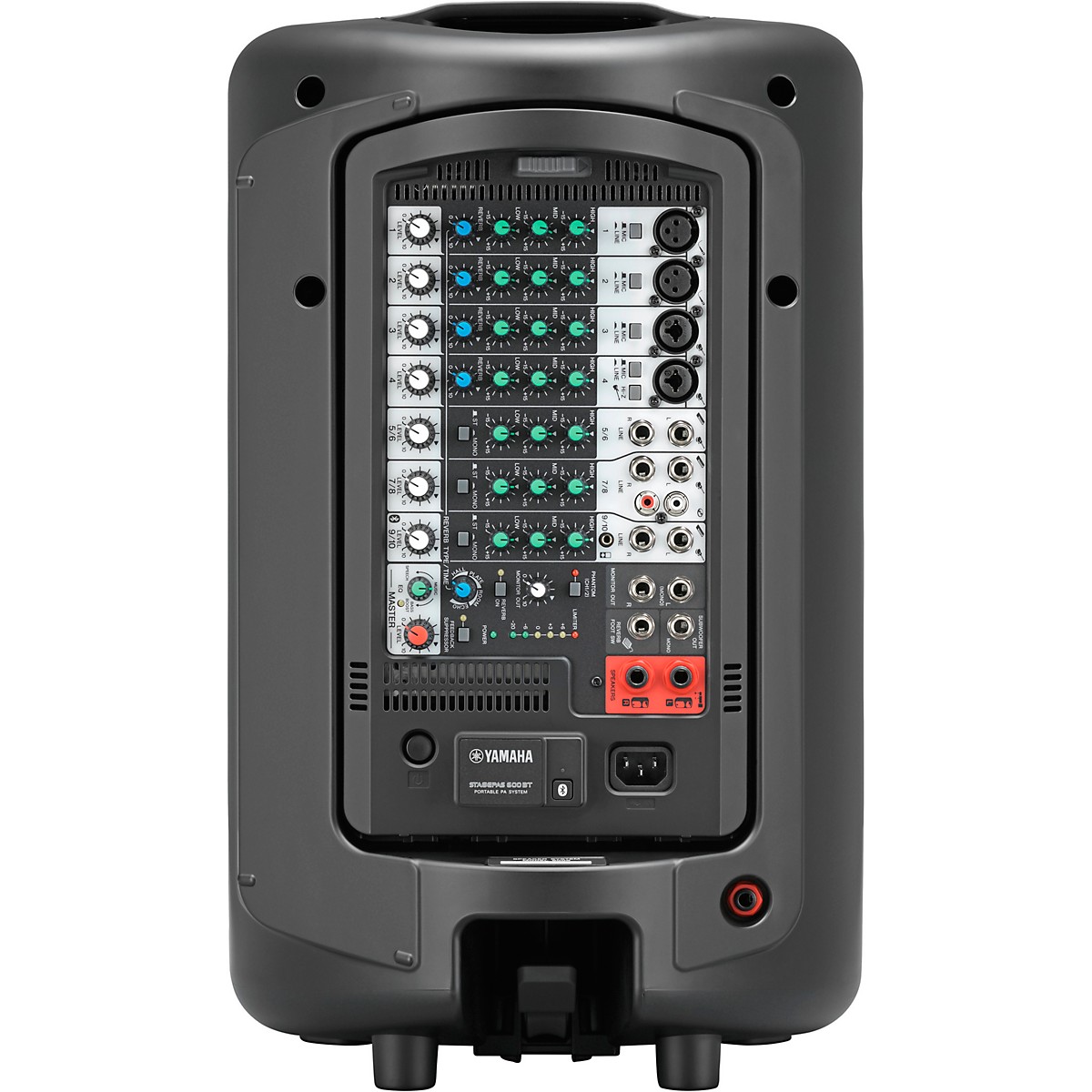 O Yamaha STAGEPAS 600BT é um sistema de PA portátil de 680 watts com mixer de 10 canais, dois alto-falantes de 10", uma entrada Bluetooth®, reverberações SPX digitais, um supressor de feedback embutido e equalizador versátil.